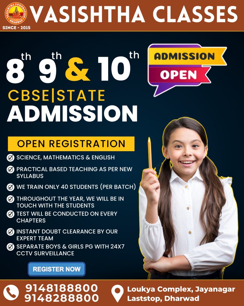 At Vasishtha Classes, we are dedicated to nurturing academic excellence and holistic development. Our programs for 8th to 10th-grade students encompass rigorous academic training, residential facilities, and activities that promote cultural awareness and personality growth.